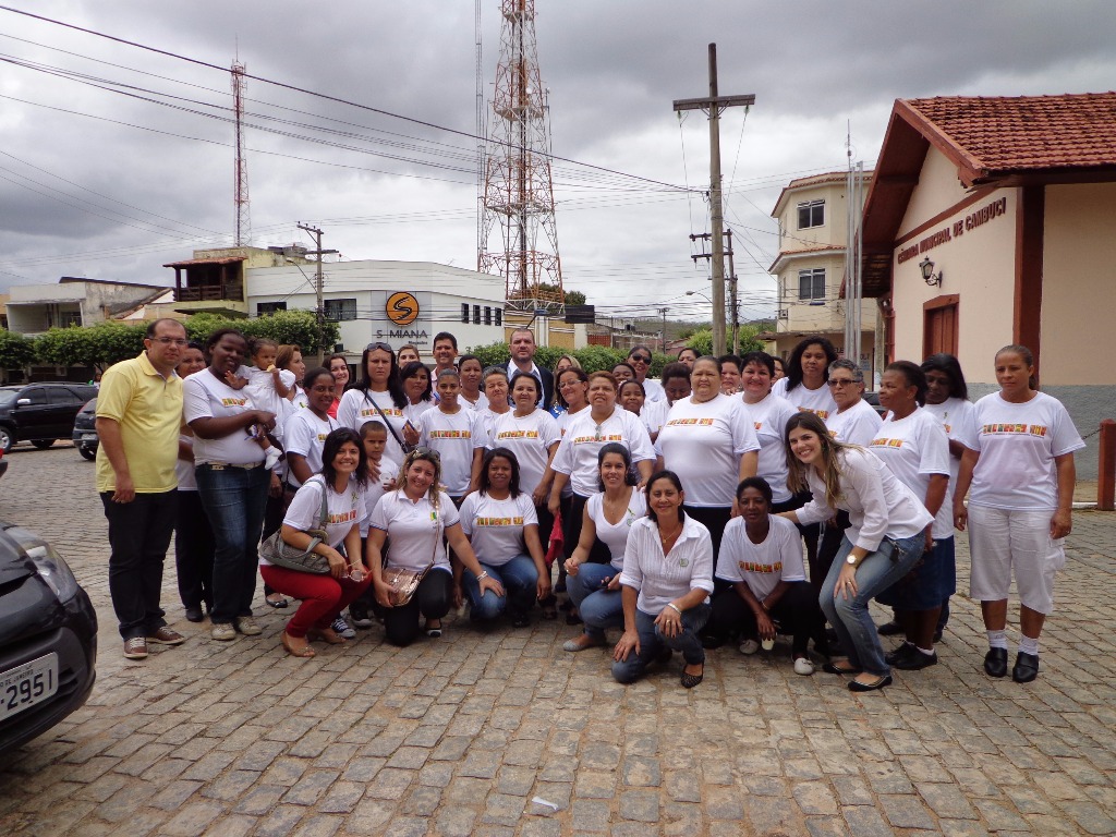 Foto 14 – As alunas do Programa Mulheres Mil do campus Cambuci, participando do desfile escolar em comemoração do aniversário da cidade de Cambuci, com a equipe da Prefeitura Municipal inclusive o Prefeito (2013).