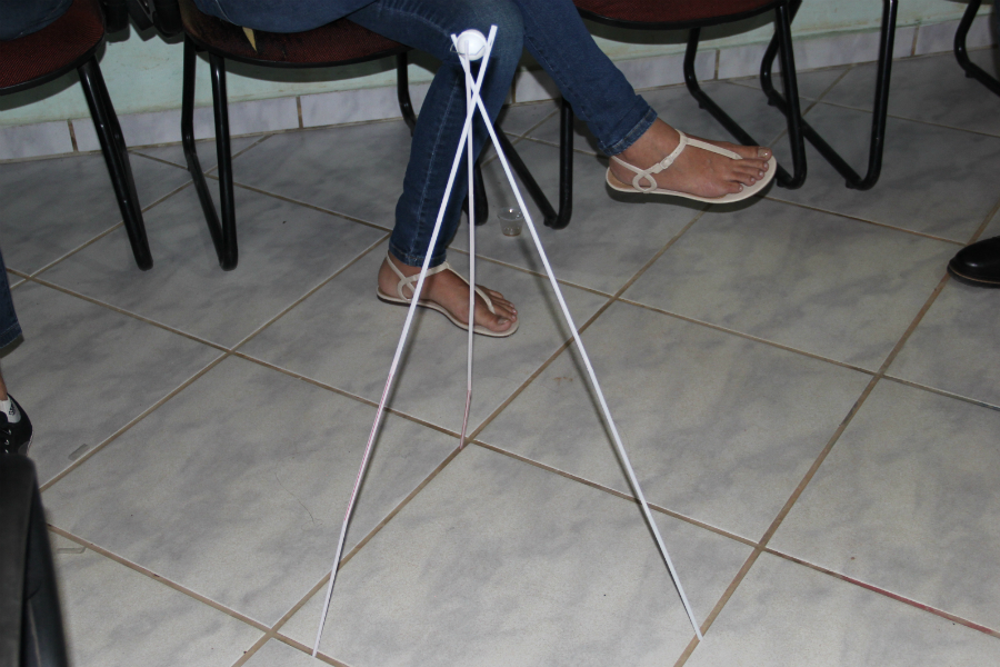 Torre de canudos produzida durante palestra do professor André Uebe.