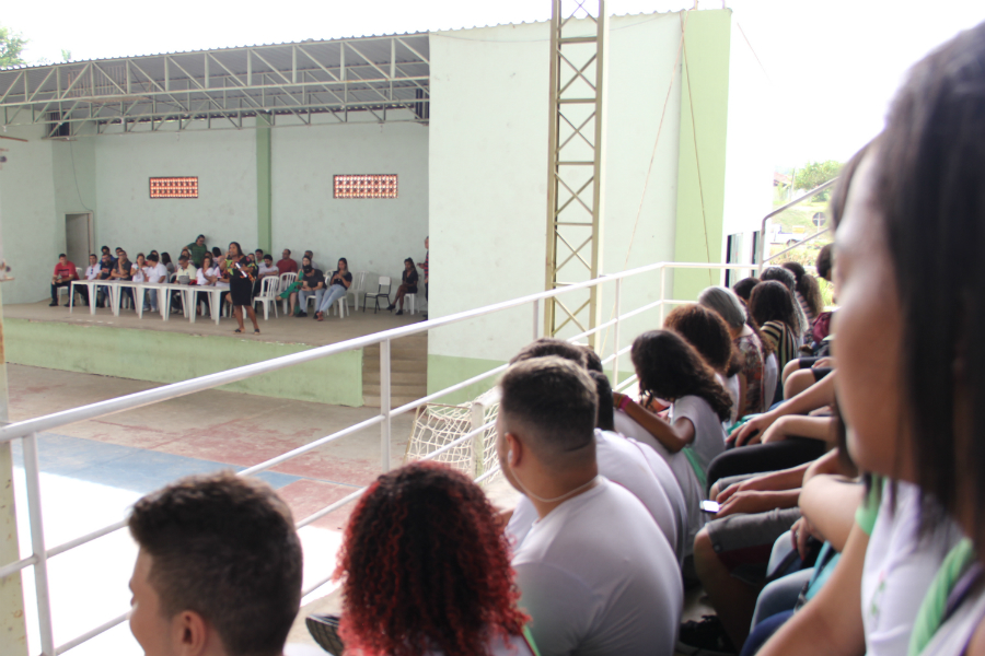 Os alunos foram recebidos em evento de boas-vindas na quadra da instituição.