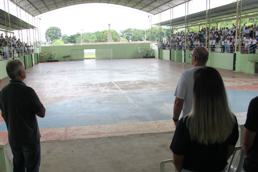 Os alunos foram recebidos em evento de boas-vindas na quadra da instituição.