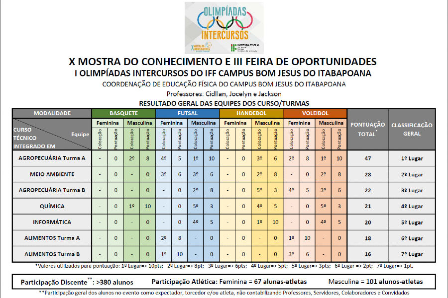 Resultado I Olimpíadas Intercursos