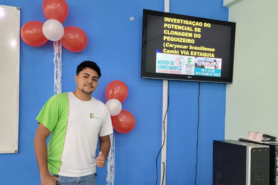 Apresentação do trabalho “Investigação do potencial de clonagem do pequizeiro (Caryocar brasiliense Camb) via estaquia” durante XI Mostra do Conhecimento.