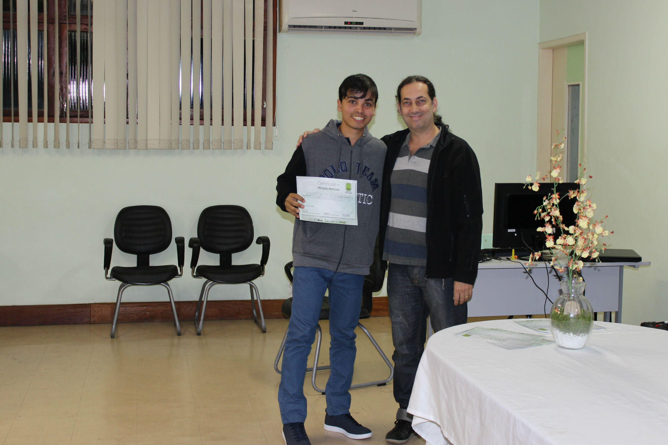 O professor Alexis durante a entrega do certificado ao aluno Josemar Ferreira