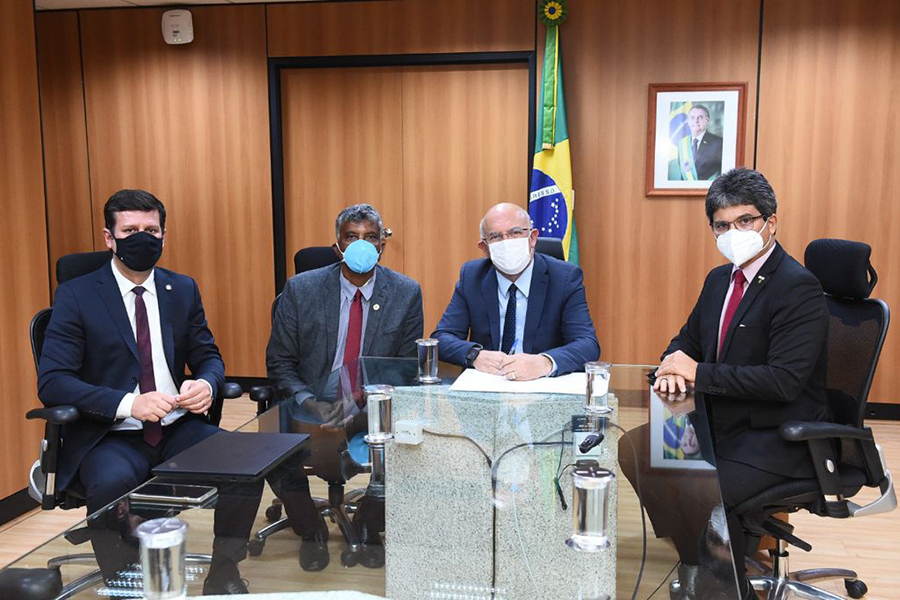 Da esquerda para a direita, o secretário da Educação Profissional e Tecnológica, Tomás Dias Sant'Ana; o diretor de Implantação do Campus Itaboraí, Vicente Oliveira; o ministro da Educação, Milton Ribeiro; e o reitor do IFFluminense, Jefferson Manhães. (Foto: Divulgação)