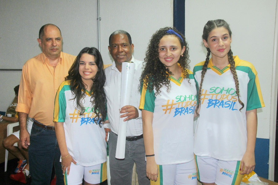Estudantes do campus Macaé receberam a chama olímpica no campo do estádio Moacyrzão, na Barra de Macaé.