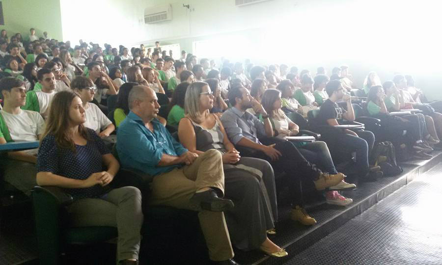 Auditório lotado durante apresentação do Consulado do Canadá.