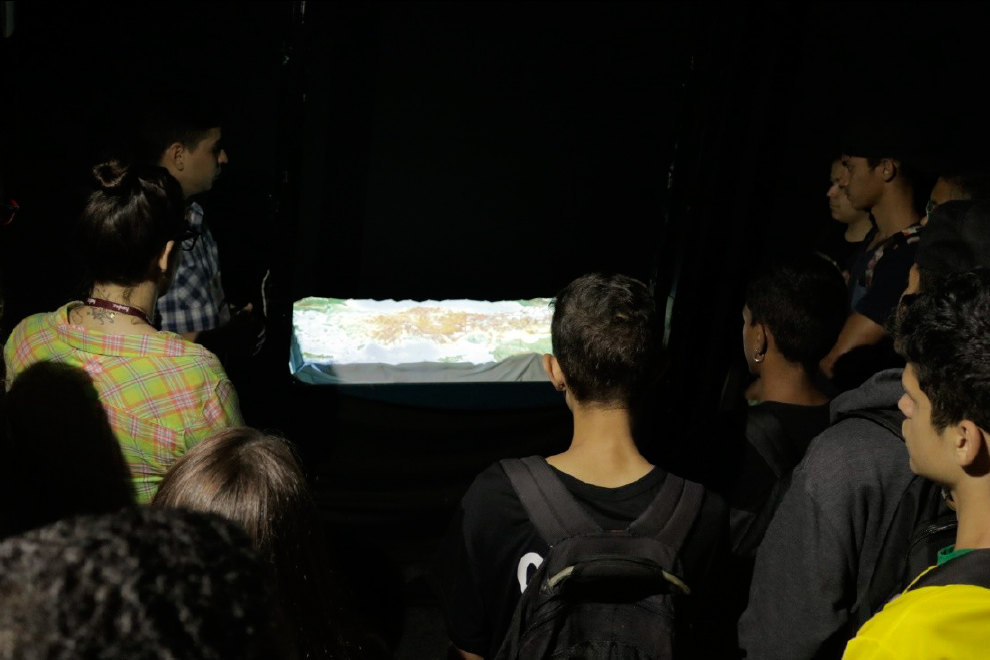 Alunos do IFF apresentando para público local na Semana Nacional de Ciência e Tecnologia.