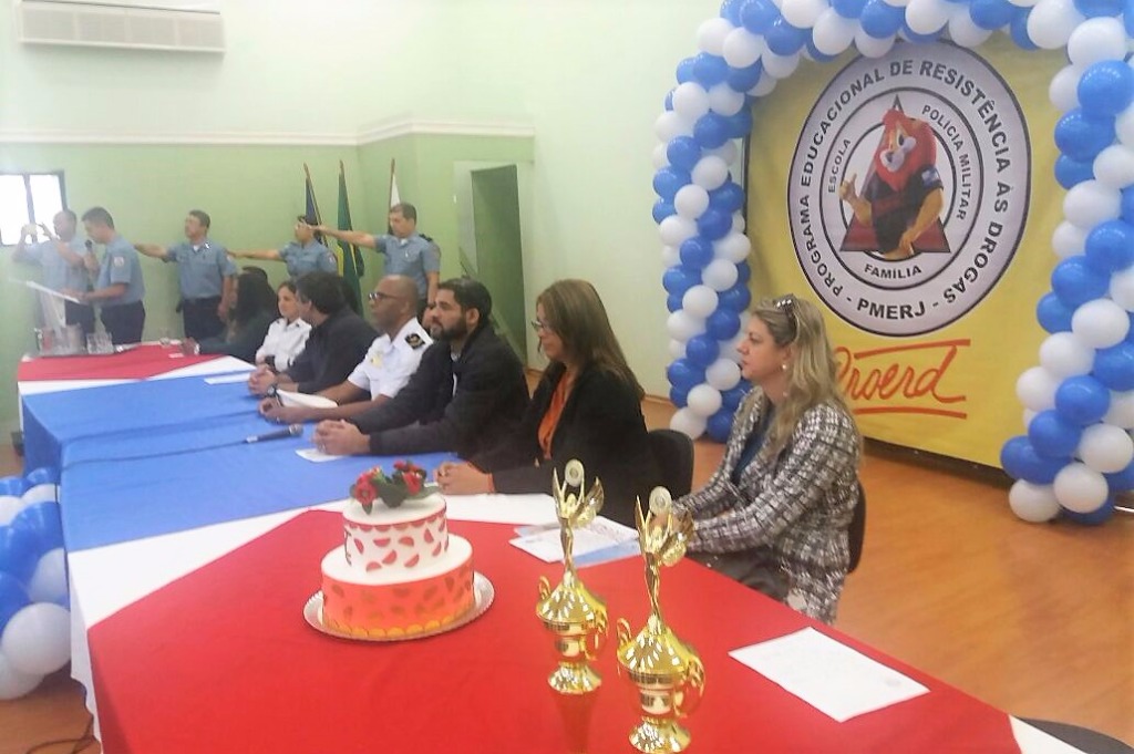 Formatura do Proerd, programa de iniciativa da Polícia Militar, no auditório do Campus Macaé.