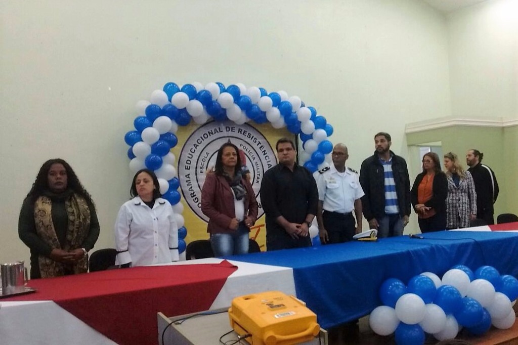 Formatura do Proerd, programa de iniciativa da Polícia Militar, no auditório do Campus Macaé.