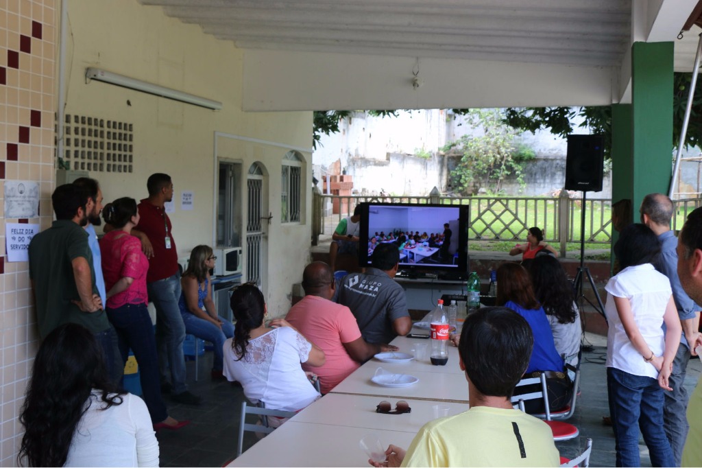 Servidores assistem vídeo com homenagem