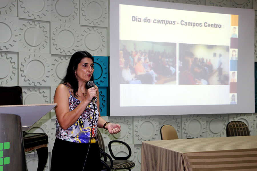 A pró-reitora de Desenvolvimento de Pessoas, Aline Naked, parabeniza os servidores pela conclusão do curso